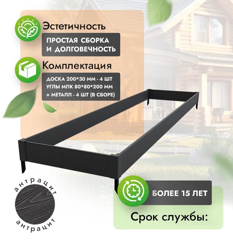 • Комплект грядок ДПК прослужит минимум 15 лет даже в самых агрессивных условиях.